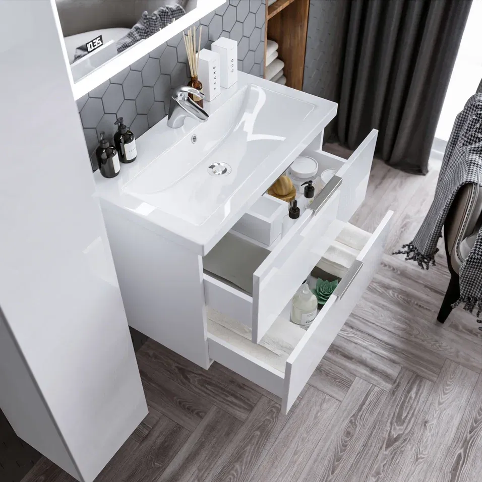 Функциональные особенности таких тумб варьируются от наличия выдвижных ящиков до встроенных систем хранения, которые помогают организовать пространство ванной комнаты. Важным аспектом является также возможность выбора различных цветовых решений и отделок, что позволяет гармонично вписать тумбу в любой интерьер – от классического до ультрасовременного.
