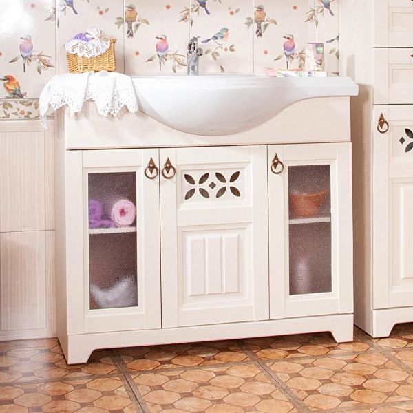 Удобная система хранения позволяет размещать все необходимое для гигиенических процедур, а её продуманные размеры отлично вписываются даже в небольшие помещения. Стильные ручки и элегантные фасады придают тумбе особый шарм, а разнообразие цветовых решений позволит выбрать модель, соответствующую любому интерьеру – от классического до модерн.