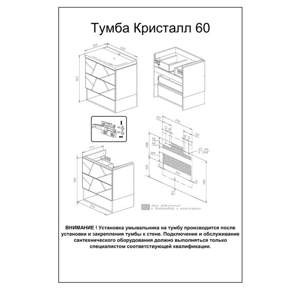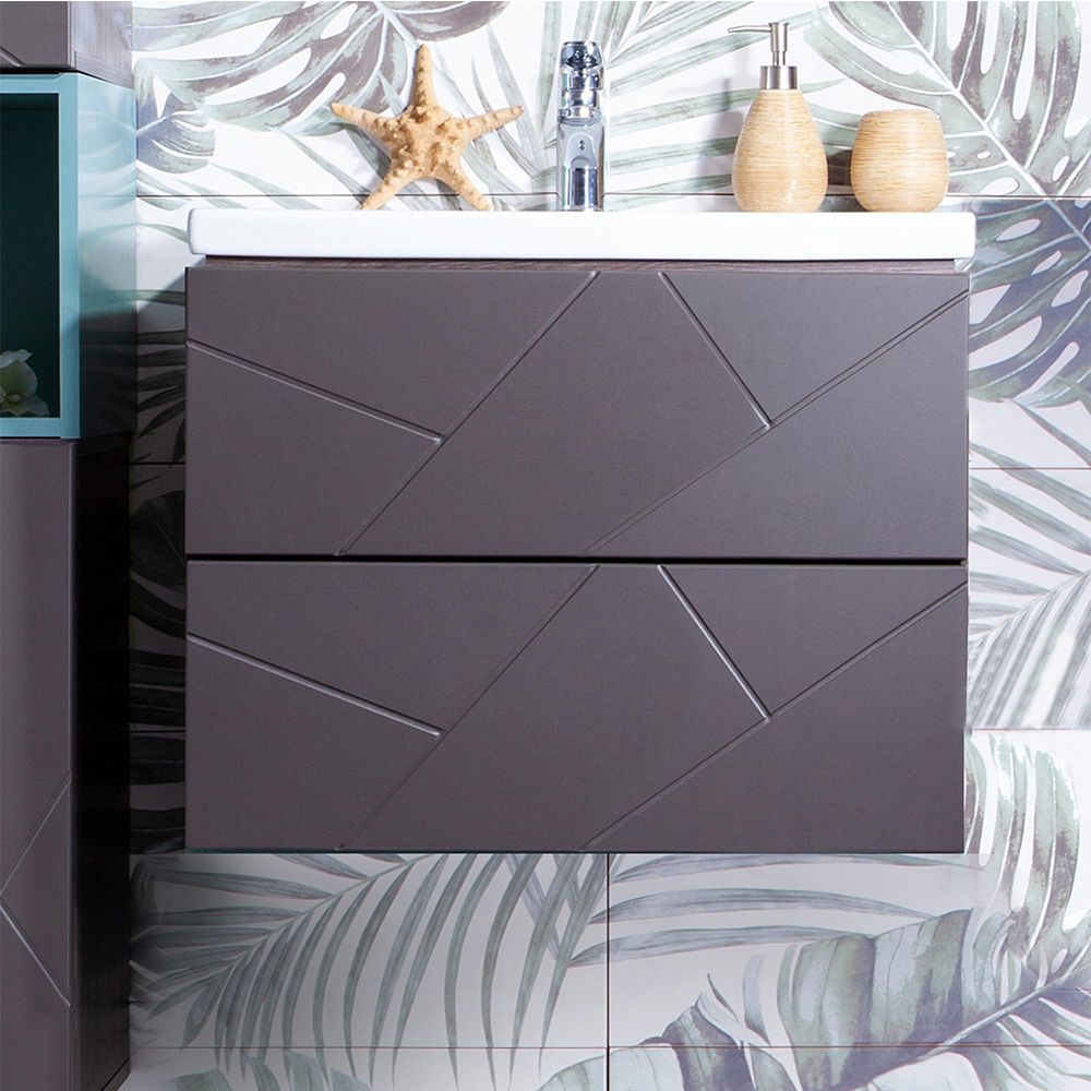 Тумба под раковину Бриклаер Кристалл 4627125414510 60 см ясень анкор темный/графит