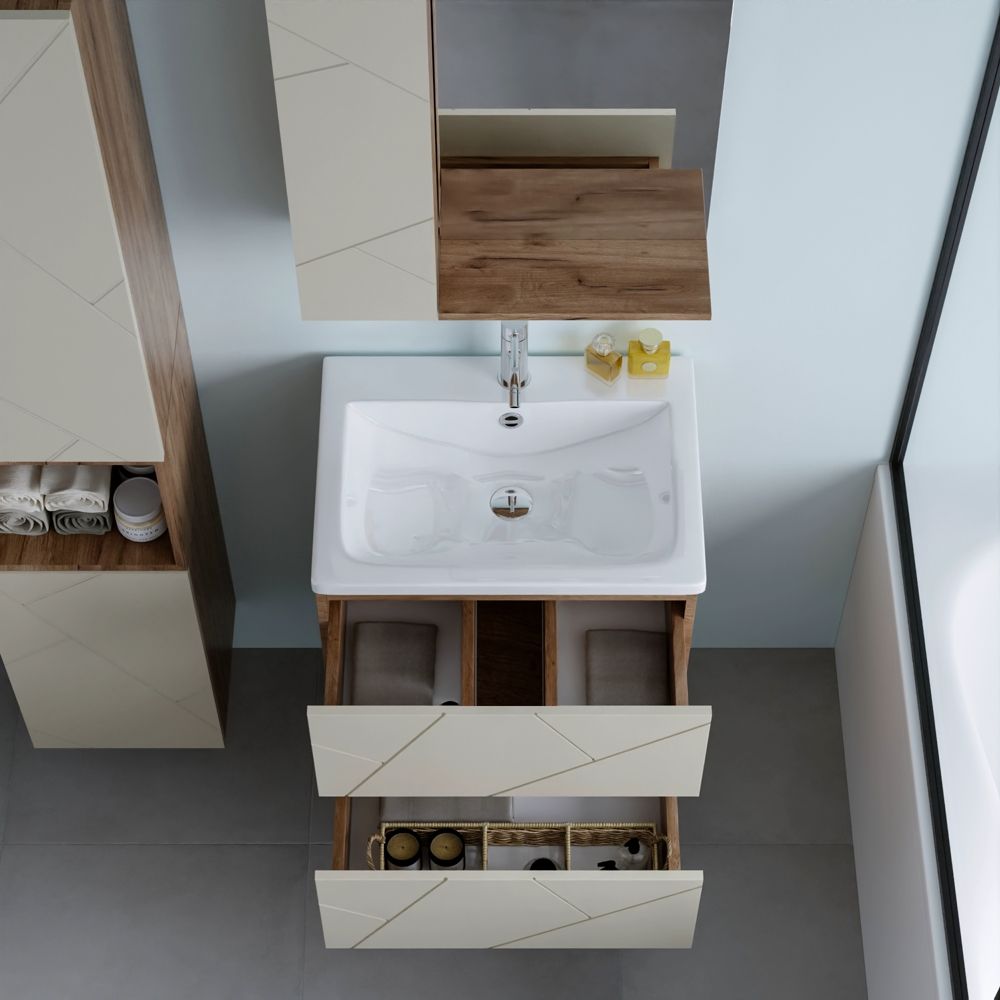 С помощью подвесной тумбы ванная комната становится не только более удобной, но и эстетически привлекательной, создавая атмосферу уюта и роскоши.