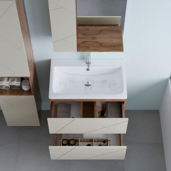 С помощью подвесной тумбы ванная комната становится не только более удобной, но и эстетически привлекательной, создавая атмосферу уюта и роскоши.