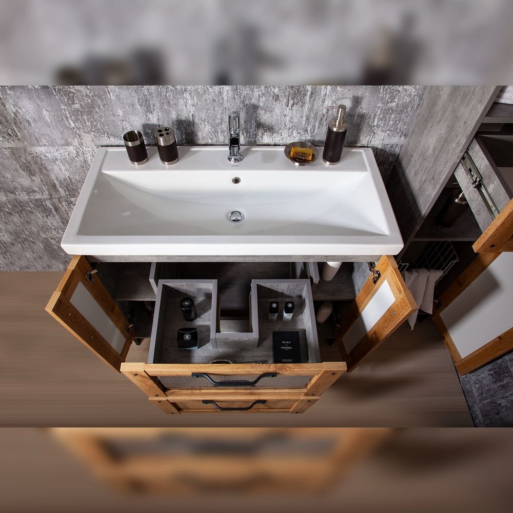 Удобная система хранения позволяет размещать все необходимое для гигиенических процедур, а её продуманные размеры отлично вписываются даже в небольшие помещения. Стильные ручки и элегантные фасады придают тумбе особый шарм, а разнообразие цветовых решений позволит выбрать модель, соответствующую любому интерьеру – от классического до модерн.