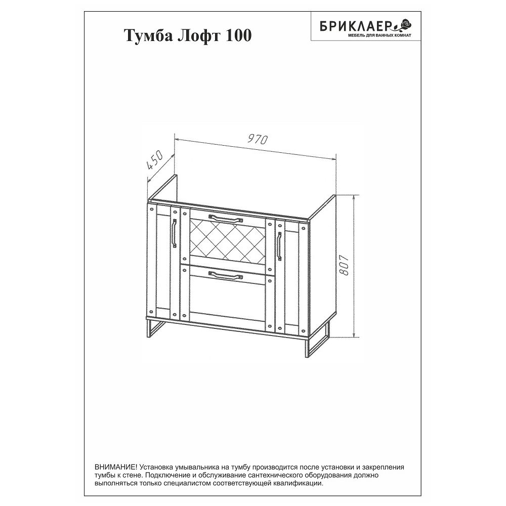 Тумба под раковину Бриклаер Лофт 4627125413377 100 см метрополитен грей