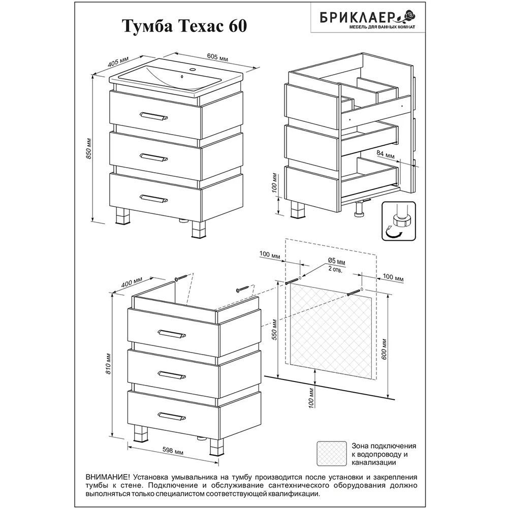 Тумба под раковину Бриклаер Техас 4627125412653 60 см кантри/венге купить