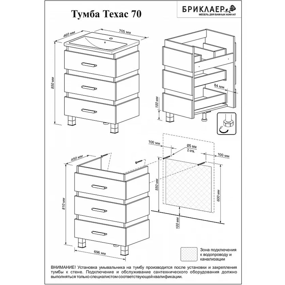 Тумба под раковину Бриклаер Техас 4627125412905 70 см кантри/венге купить
