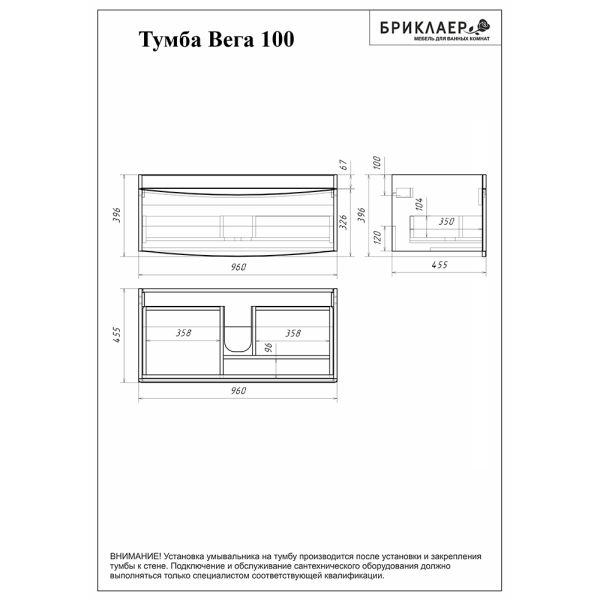 Тумба под раковину Бриклаер Вега 4627125414060 100 см белый