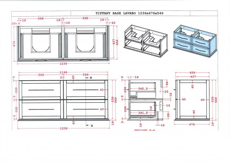 База под раковину с 4-мя выдвижными ящиками