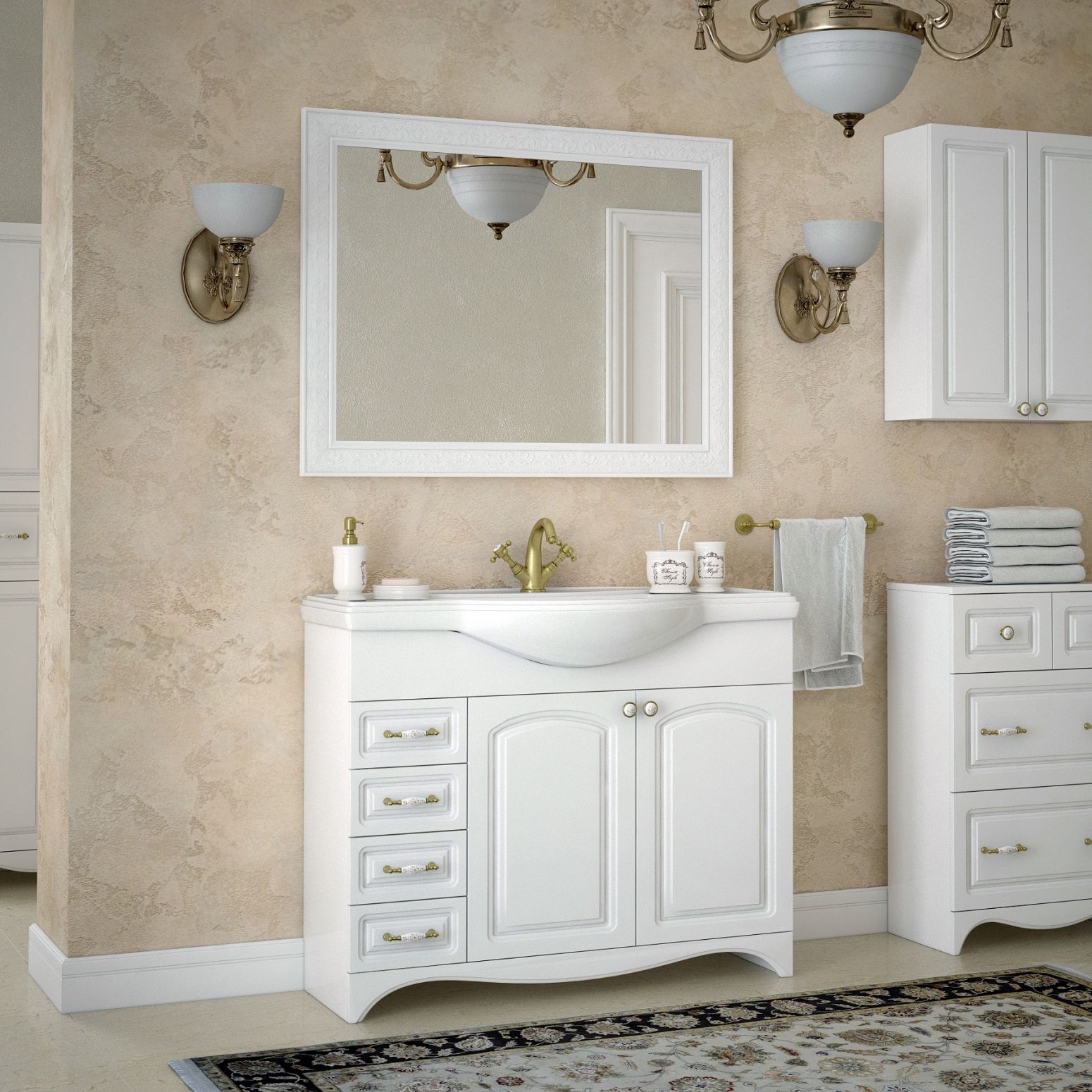 Тумба для комплекта Corozo Классика 105 не только прекрасное украшение для ванной комнаты, но и замечательное функциональное решение любого санузла. Напольный способ установки производится непосредственно на пол, при этом конструкция максимально устойчива при серьезных физических нагрузках.В производстве используют только качественные влагостойкие материалы (МДФ), в составе которых полностью отсутствуют опасные вещества. Серия Классика отличается превосходным дизайном с соблюдением всех серьезных элементов. Основным цветом, в котором выполнена тумба под раковину Corozo Классика является белый, безупречно впишется в любой дизайн проект. Тумба под раковину предусматривает удобную и вместительную систему хранения, состоящую из дверей, ящиков. Качественные доводчики позволяют обеспечить мягкое и тихое закрывание. Важные размеры товара: ширина 101.5 см, глубина 33 см, высота 82.5 см.Страной бренда Corozo является Россия, все товары производятся с выполнением соответствующих стандартов качества, что позволяет быть полностью уверенными в долговечности и надежности. Тумба для комплекта Corozo Классика 105 правильный выбор в современном дизайне ванной, придающий уникальность всему помещению, при этом сохраняя функциональность.