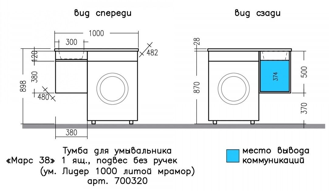 Тумба под раковину для стиральной машины СанТа Марс 700320 подвесная 38см белый