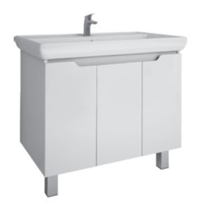 Тумба под раковину Dreja Q PLUS (D) 99.1006 80 см Белый глянецТумба Q PLUS (D), 80 см, подвесная/напольная, 3 дверцы, с опорами, белый глянец