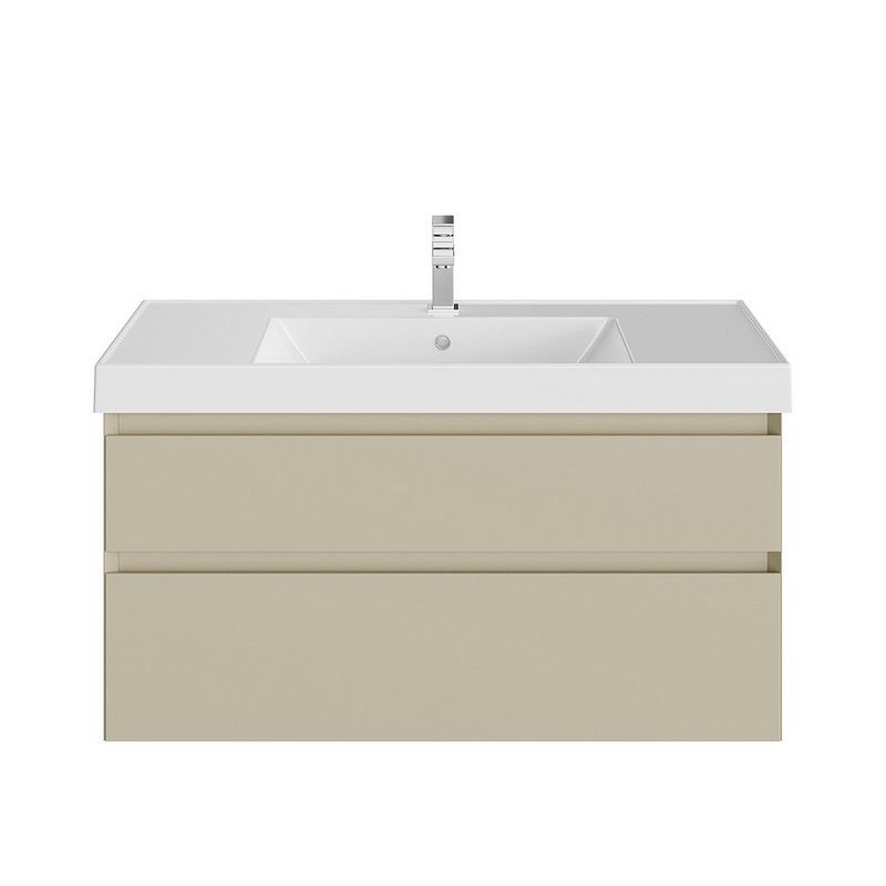 Подвесная тумба в цвете лимо (бежевая) матовая с двумя выдвижными ящиками. Ящики закрываются пла... Подробнее