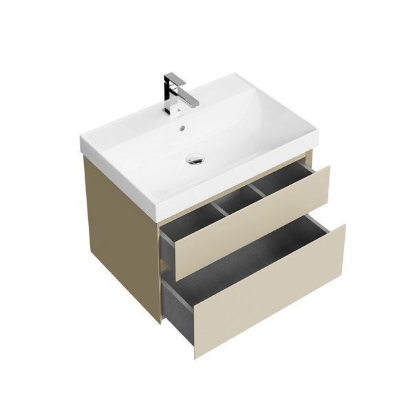 Подвесная тумба в цвете лимо (бежевая) матовая с двумя выдвижными ящиками. Ящики закрываются плавно и бесшумно. Внутренняя отделка ящиков напоминает фактуру ткани. Сочетается с раковиной CUBO шириной 70 см Изделия из ДСП, МДФ, а также изделия из металла требуют правильного ухода и эксплуатации. При установке и дальнейшей эксплуатации изделий, следует обратить внимание на их расположение в ванной комнате: они должны быть установлены вдали от источников тепла; температура воздуха в помещении должна быть в пределах +2 — +25 °С, а влажность воздуха не должна превышать 45%-70%. Во избежание появления пятен, отслоения облицовки и коррозии металла, не допускать скопления воды и жидкостей на поверхностях изделий и как можно скорее протереть сухой мягкой тканью участок, контактирующий с жидкостью. Соблюдайте правила ухода за изделиями из металла и они прослужат Вам очень долго.