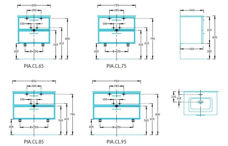 Тумба PIANO Classic шириной 95 см подходит для раковины PIANO соответствующей ширины. Мебель выполнена из МДФ и покрыта качественной немецкой пленкой ПВХ. Ящики выдвижного типа снабжены ручками в цвете «потертый никель», который хорошо сочетается с хромированными смесителями. В комплект входят крепления, гарантийный талон и инструкция по монтажу.