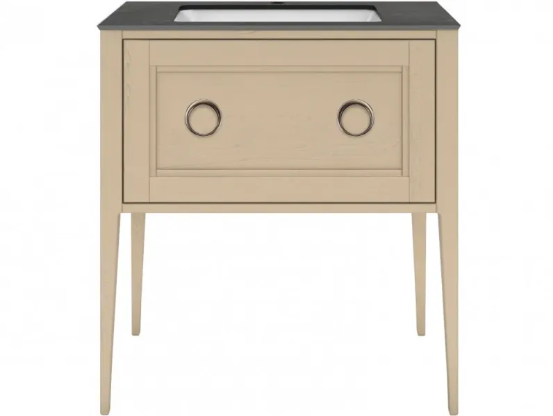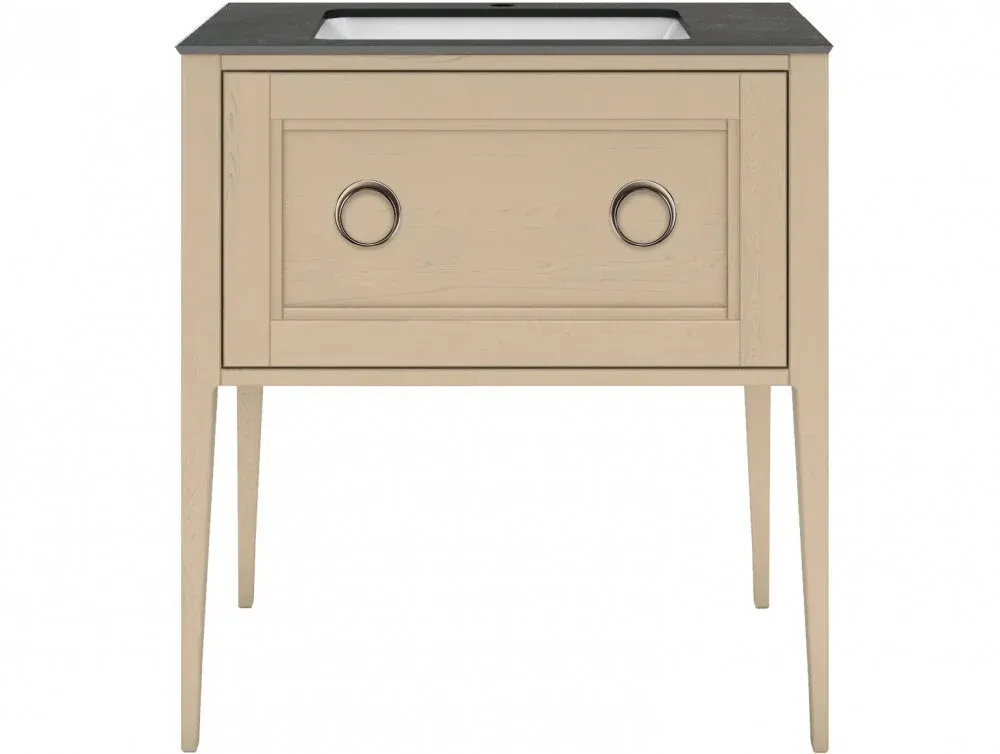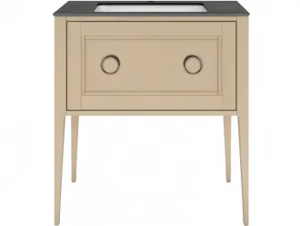 Напольная тумба с одним выдвижным и одним внутренним ящиками выполнена из массива ясеня с отделкой «открытая пора». Вместительный ящик с плавным закрыванием украшен двумя крупными ручками. Сочетается с керамическими столешницами PLAZA Classic шириной 80 см. Подходит для установки раковин с типом монтажа «накладная на столешницу» и «встраиваемая сверху».