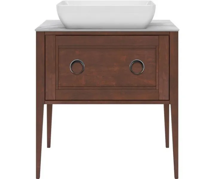 Напольная тумба с одним выдвижным ящиком выполнена из массива ольхи с отделкой «закрытая пора». Вместительный ящик с плавным закрыванием украшен двумя крупными ручками. Сочетается с керамическими столешницами PLAZA Classic шириной 80 см. Подходит для установки раковин с типом монтажа «встраиваемая снизу».