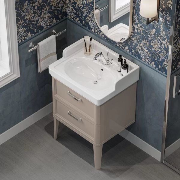 В варианте с двумя ящиками у тумбы POMPEI появляются две высокие ножки. Фасад мебели выполнен со скруглениями по двум сторонам. В мебели использована качественная амортизирующая фурнитура.   Вместительный ящик тумбы внутри сделан с отделкой «лён антрацит», характерной для большинства новых моделей мебели KERAMA MARAZZI. Тёплый цвет «камео бежевый» хорошо сочетается с широким спектром стилей, поэтому такую мебель можно использовать как в современных, так и в традиционных интерьерах.