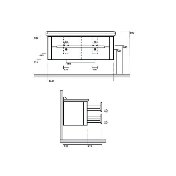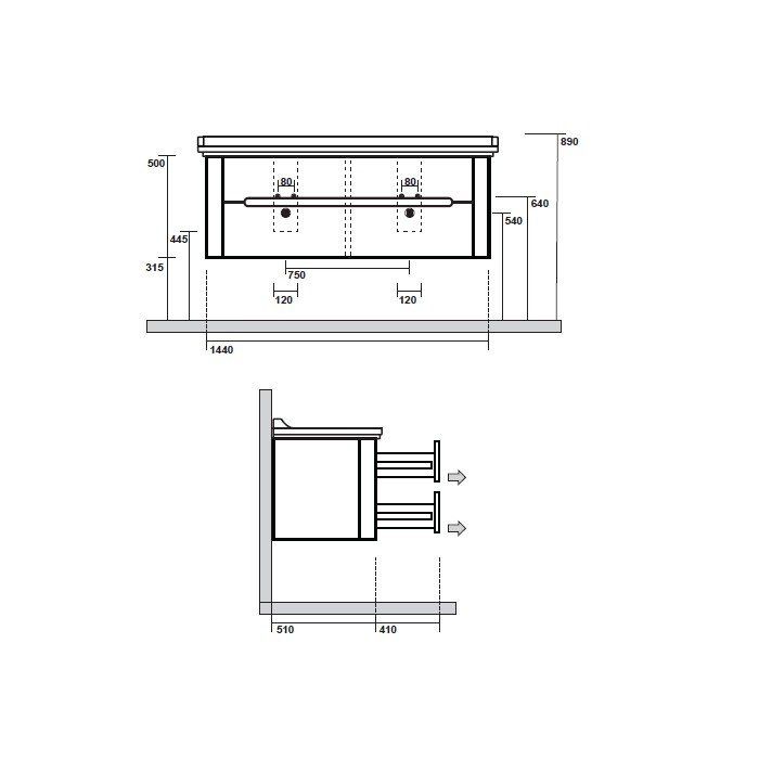 Габариты корпуса тумбы (ВхШхГ): 500х1440х510 мм.