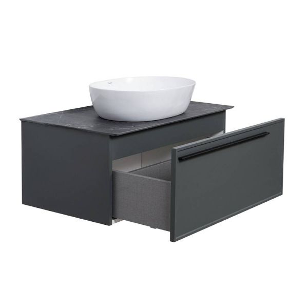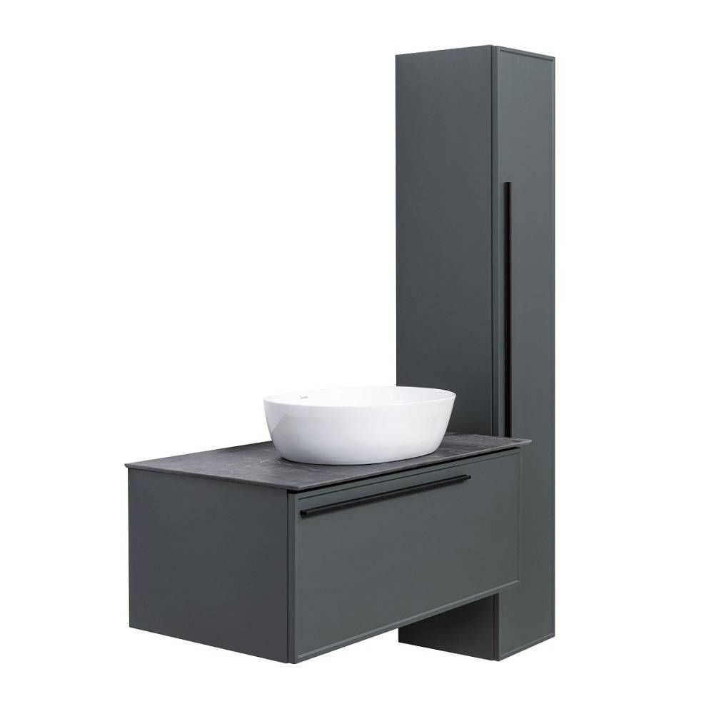 Тумба под раковину La Fenice Elba FNC-01-ELB-G-90 87.6 смПодвесная тумба La Fenice Elba FNC-01-ELB-G-90 обладает рядом неоспоримых преимуществ. Тумбу можно оснастить правосторонней или левосторонней встраиваемой раковиной (арт. CU.NN.90R или CU.NN.90L), либо же приобрести столешницу в подходящем цветовом решении (арт. FNC-03-PL01-90, FNC-03-VS03-90) и установить на неё раковину-чашу. За счет входящего в комплект сифона Prevex, тумба обладает полноценным ящиком для хранения (без выреза). Ящик выполнен в фантазийной цветовой гамме "Лён антрацит". Тумба оснащена скрытыми доводчиками плавного закрывания частичного выдвижения Samet (Турция) и подвесным регулируемым механизмом Camar (Италия). Фасад и корпус тумбы покрыты краской и матовым лаком, что является надёжной защитой от влаги. Прекрасным и функциональным дополнением к тумбе станет пенал La Fenice Elba серо-зеленого цвета FNC-05-ELB-G-30