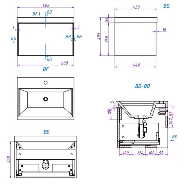 Габариты корпуса тумбы (ШхВхГ): 600х350х440 мм.