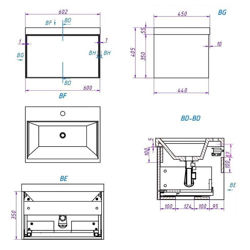 Тумба под раковину La Fenice Simpla FNC-01-SIM-BG-60 Синяя матовая 60 см купить