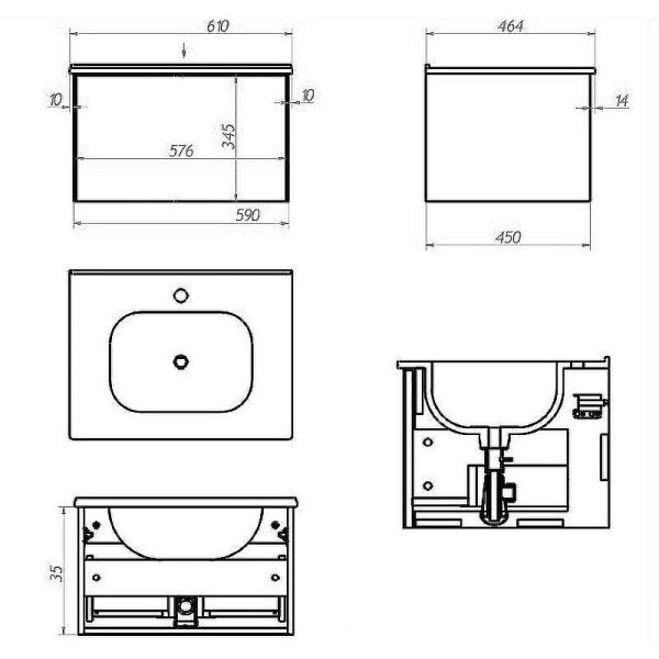 Габариты корпуса тумбы (ШхВхГ): 590х350х450 мм.