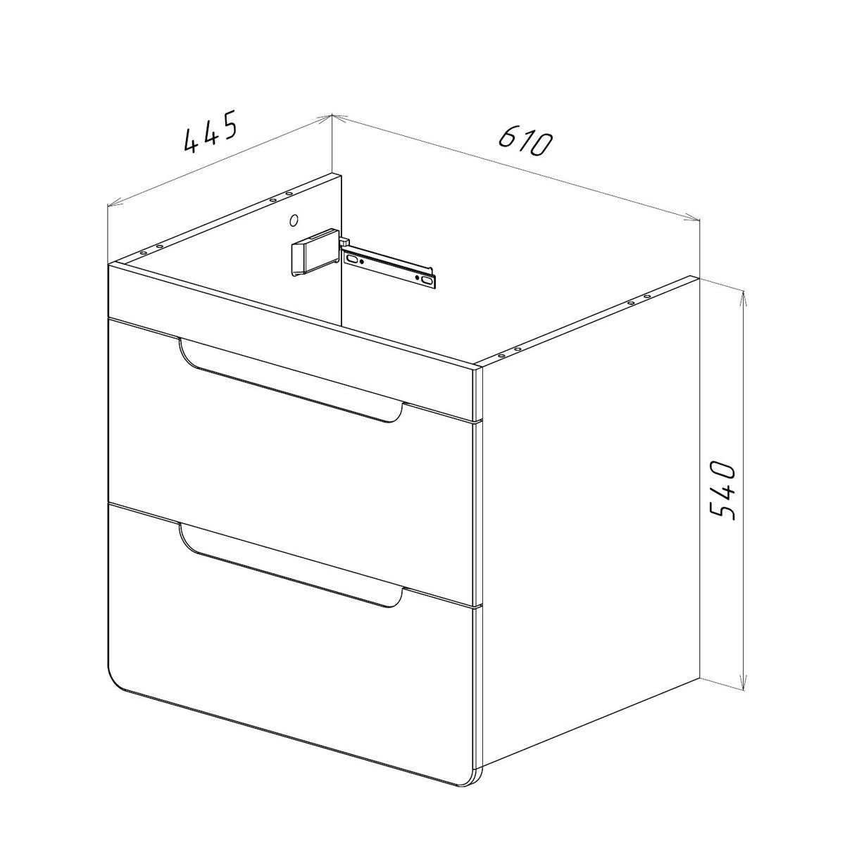 • Габариты без раковины (ШГВ): 610х445х540 мм;