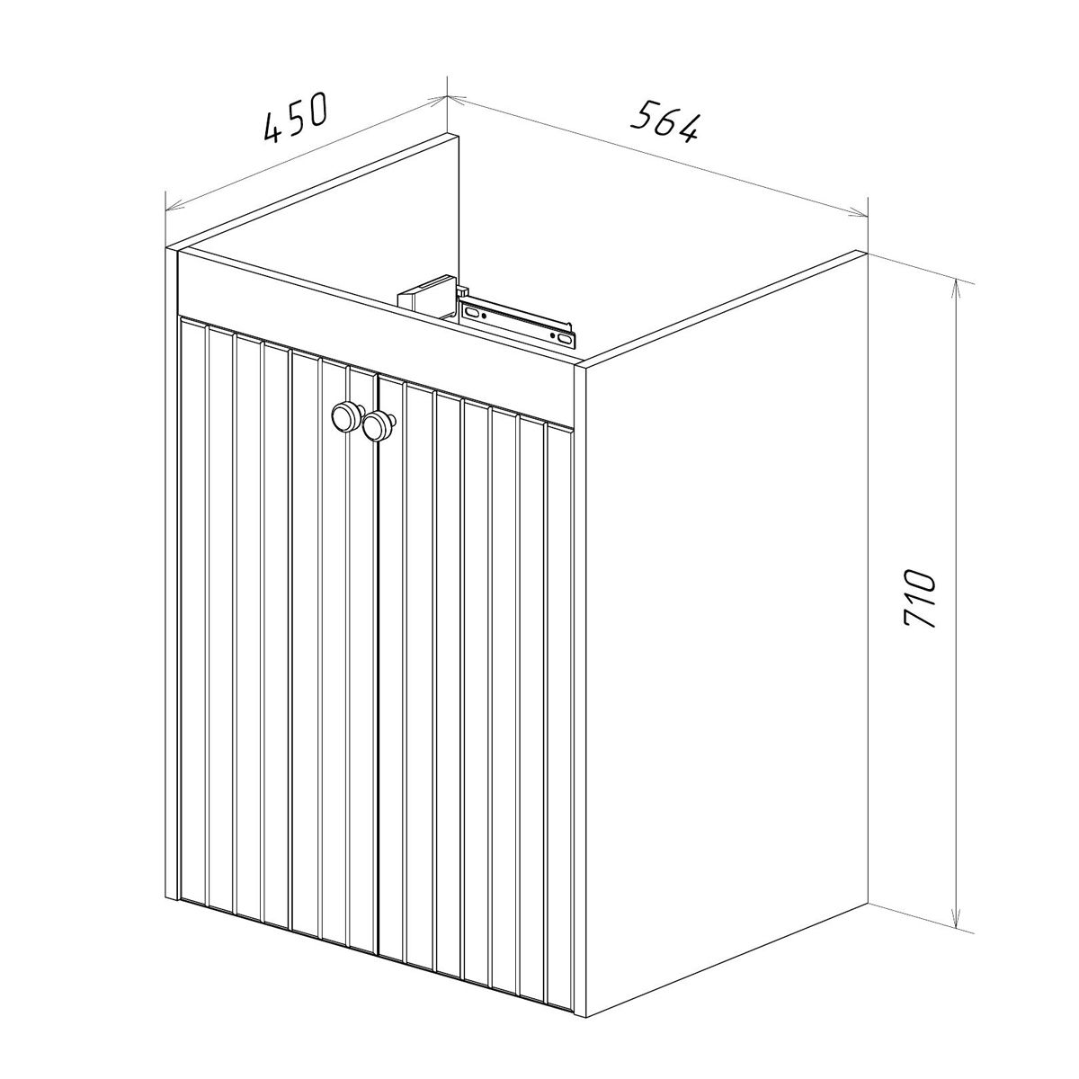 • Габариты без раковины (ШГВ): 564х450х710 мм;