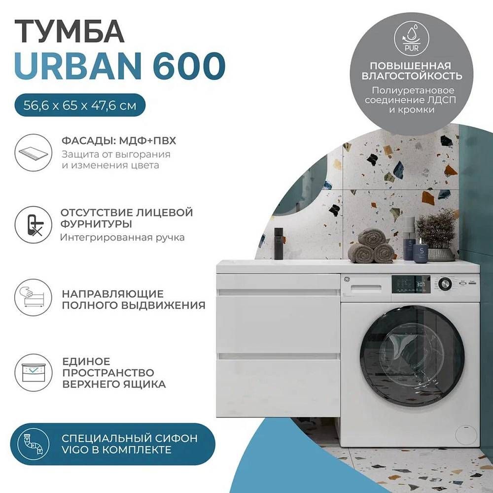 Тумба под раковину над стиральной машиной Vigo Urban 043 60 см белый