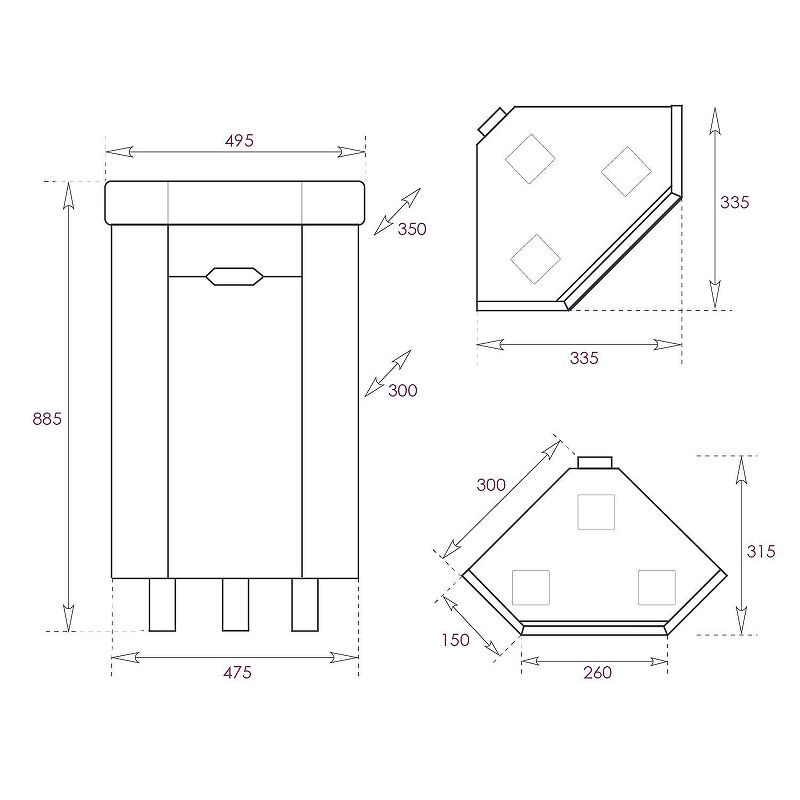 Размеры тумбы без учета раковины и ножек 47x31x68 см.
