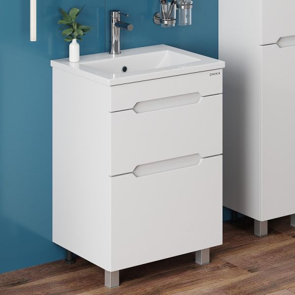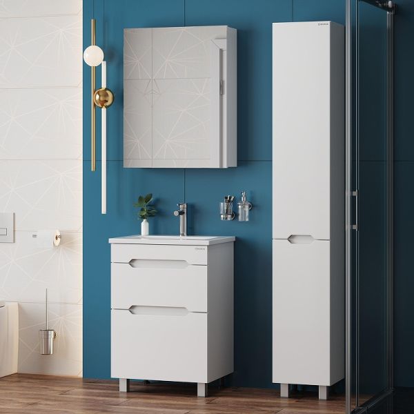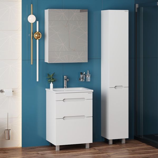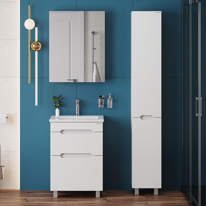 Напольная тумба для ванной комнаты Onika Айленд 50 сочетает в себе стильный минималистичный дизайн, белую глянцевую поверхность и высочайшее качество исполнения.