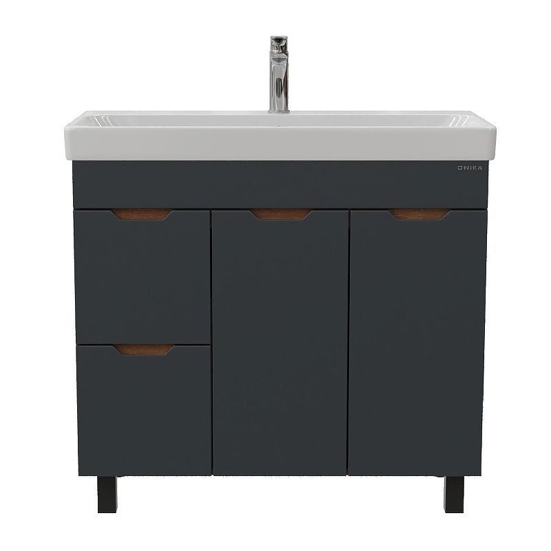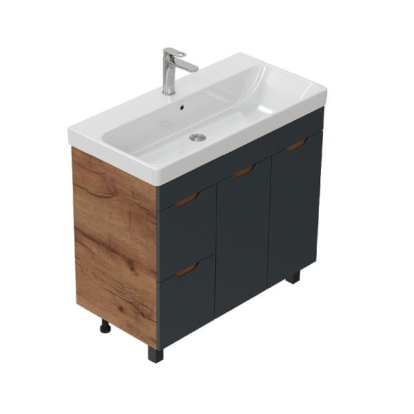Тумба под раковину напольная Onika Айленд 109032 с корзиной 90 см графит/дуб крафт золотой купить