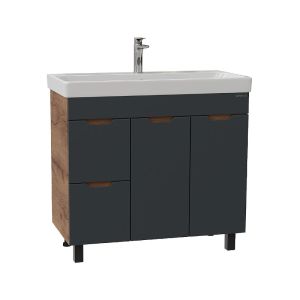 Тумба под раковину напольная Onika Айленд 109032 с корзиной 90 см графит/дуб крафт золотой