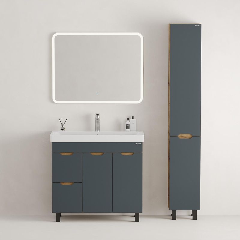 Тумба впишется в любой интерьер благодаря трендовому сочетанию матового графита и золотого дуба, а также поможет эффективно организовать пространство, что особенно важно в небольших ванных комнатах.