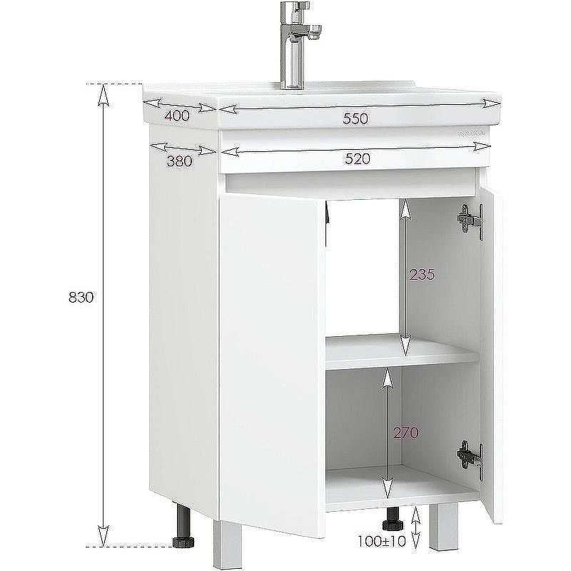 Тумба под раковину напольная Onika Милтон Квадро 105561 55 см белый