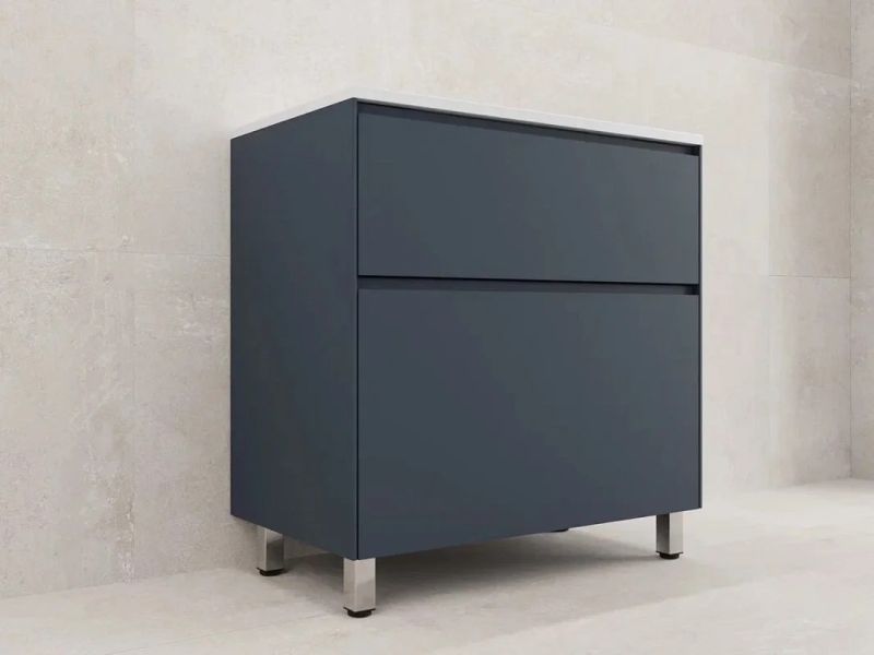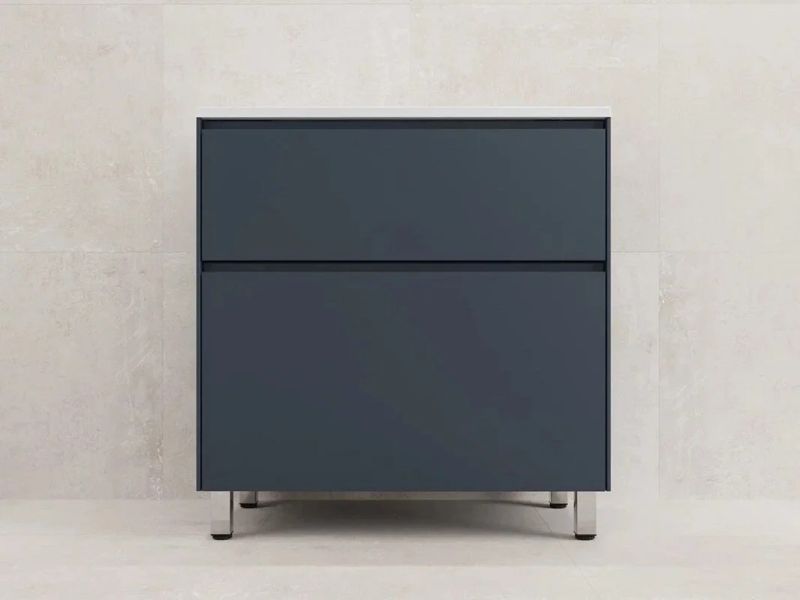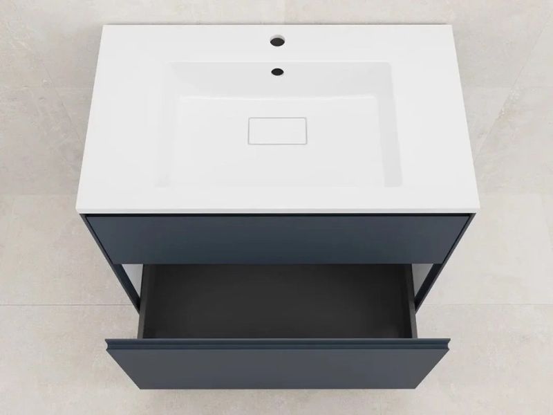- Тумба имеет ширину 79,9 см, что делает её подходящей для стандартных ванных комнат.