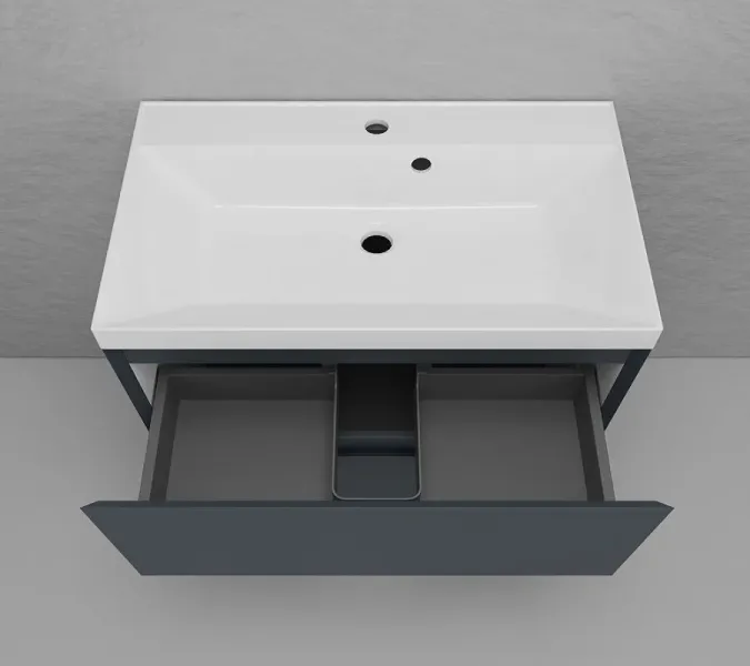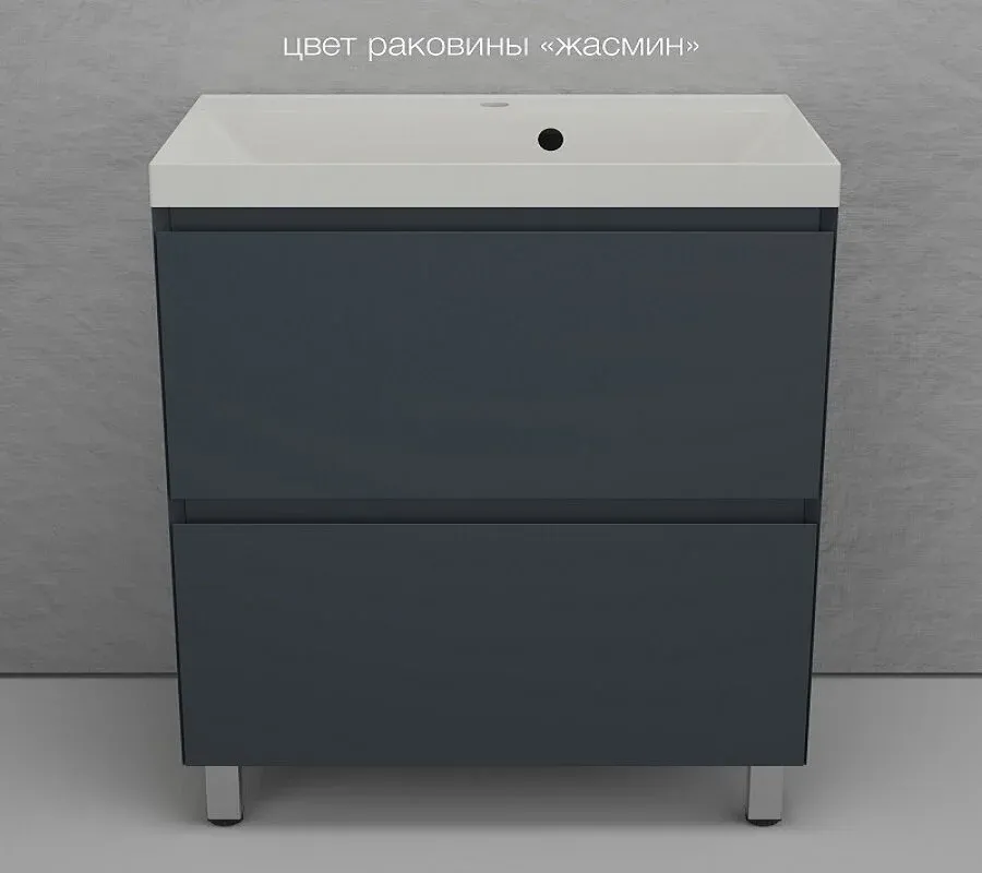 Тумба под раковину Style Line Манхэттен 80 ЛС-00002372, 80 см, напольная, графитЭмаль премиум класса Hesse (Германия) с сатиново - матовым эффектом. Вместительные ящики оснащены системой плавного закрывания HETTICH. Раковина приобретается отдельно. Подходит раковина Asti 100 в белом цвете, графит, жасмин и серый шелк.Основные характеристики: