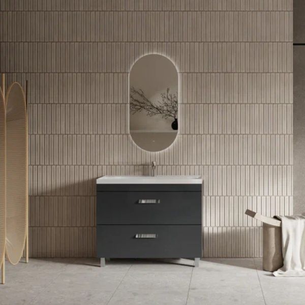 Тумба под раковину напольная Velvex Orlando tn.ORL.CLA.100.2Y графит, 100 см: 2 выдвижных ящика с механизмом плавного закрывания.