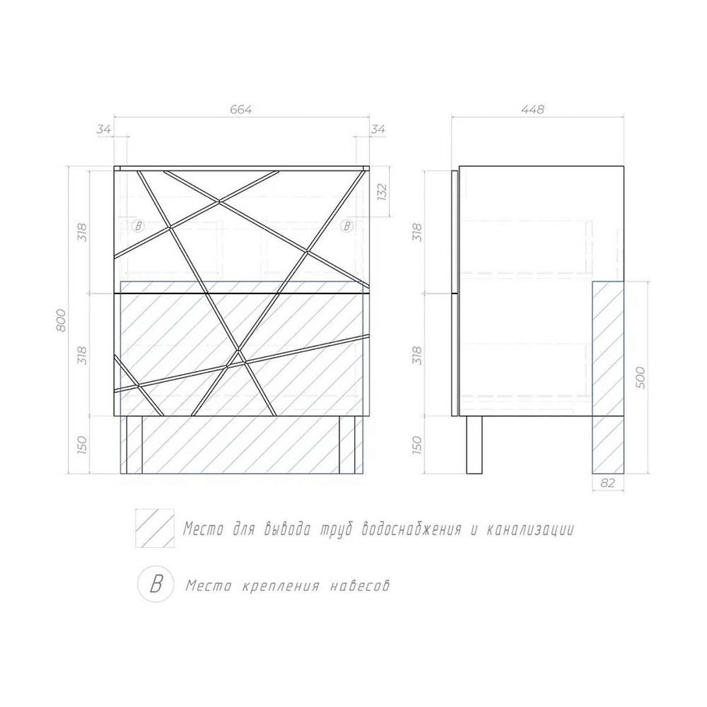 Тумба под раковину напольная VIGO Geometry 015 бетон, 60 см. Гарантийный срок 2 года. Монтаж: на... Подробнее