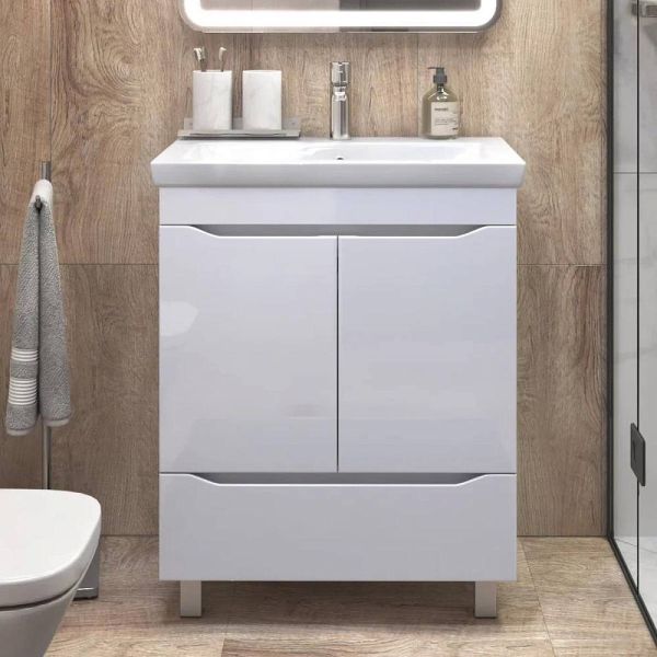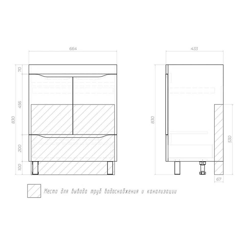 Тумба под раковину напольная VIGO Grani 285, 70 см. Гарантийный срок 2 года. Монтаж: напольный. Доводчик: да. Нажимной механизм: нет.