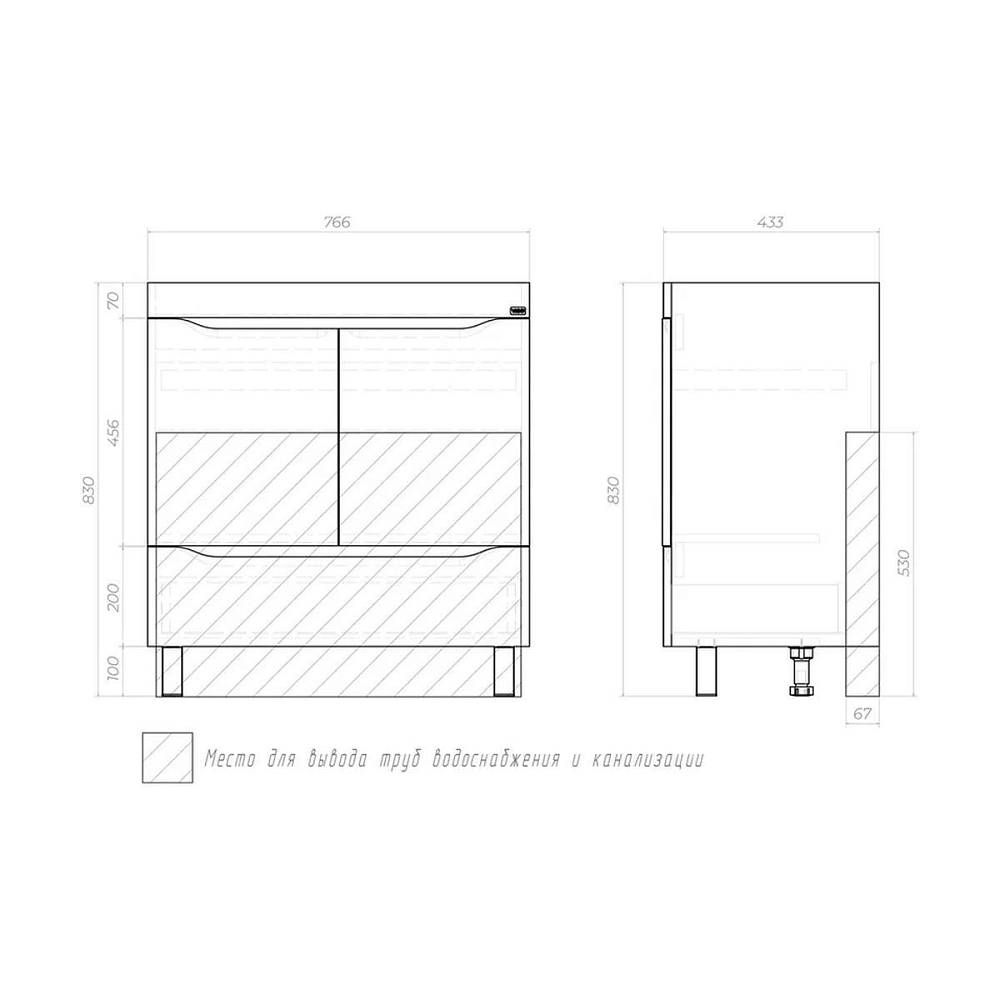 Тумба под раковину напольная VIGO Grani 286, 80 см. Гарантийный срок 2 года. Монтаж: напольный. Доводчик: да. Нажимной механизм: нет.