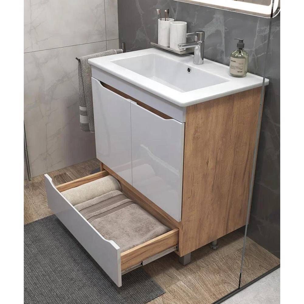 Тумба под раковину напольная VIGO Grani tn.GRI.OSK.75.2D.1Y дуб золотой, 75 см. Гарантийный срок 2 года. Монтаж: напольный. Доводчик: да. Нажимной механизм: нет.