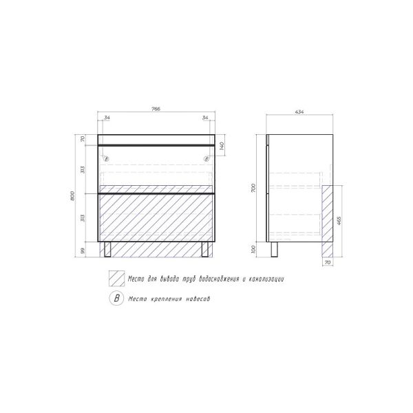 Тумба под раковину напольная VIGO Land 021, 80 см. Гарантийный срок 2 года. Монтаж: напольный. Доводчик: да. Нажимной механизм: нет.