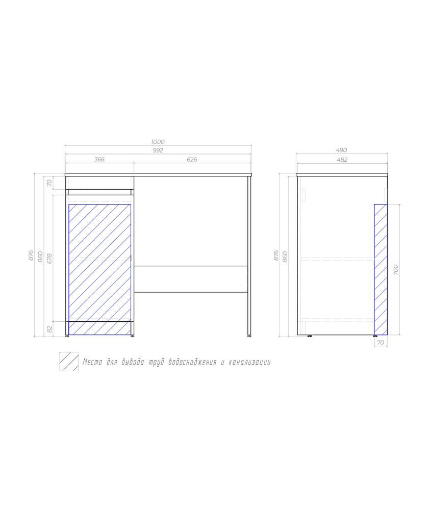 Специальный сифон Vigo в комплекте.Материал корпуса: влагостойкая ЛДСПМатериал фасада: ЛМДФПокрытие фасада: пленка ПВХОтсутствие лицевой фурнитуры – интегрированная ручка.В комплект поставки входит только тумба, столешница приобретается отдельно!