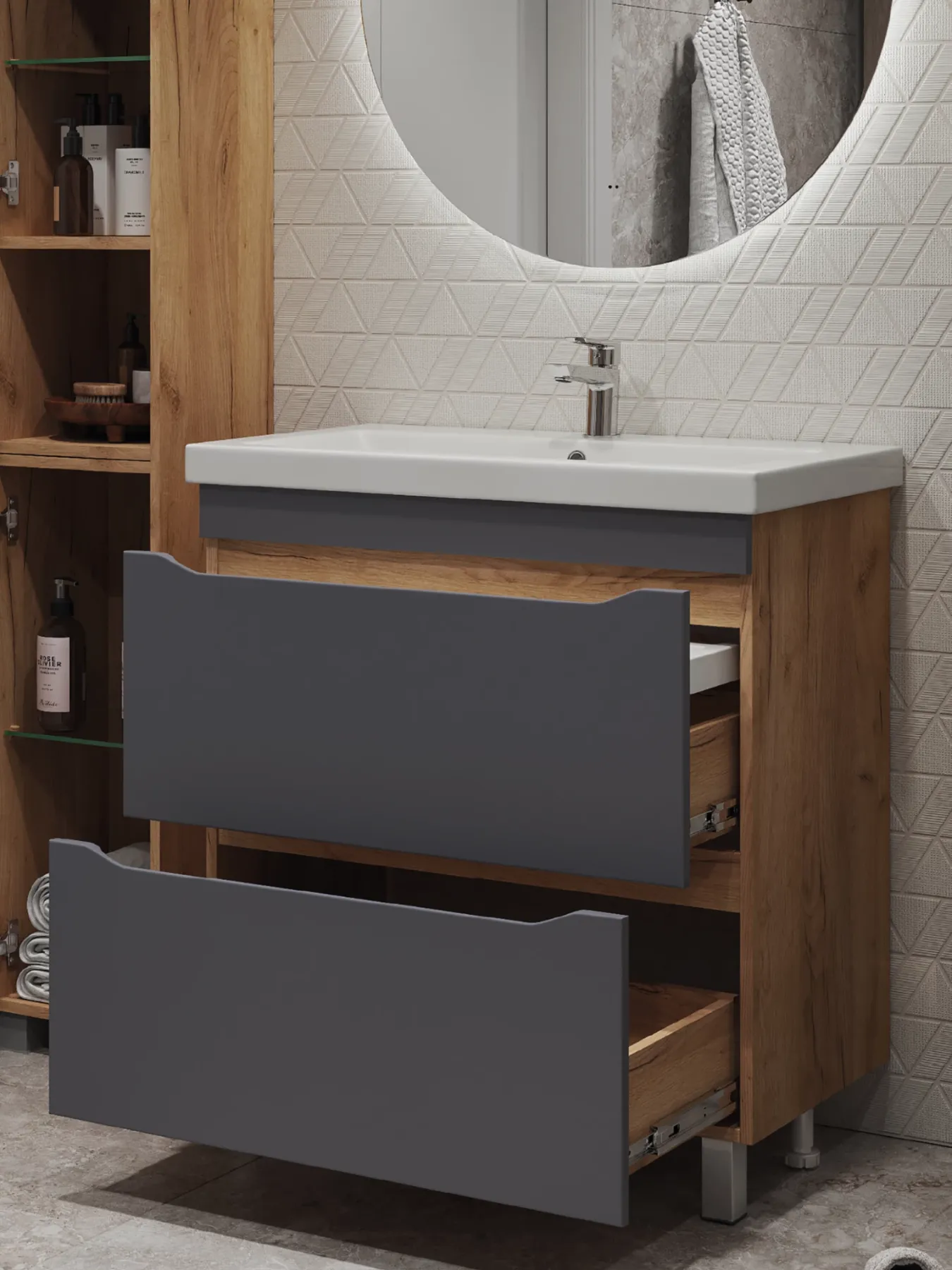 Тумба под раковину напольная Vigo Wave 385 80 см поставляется в разобранном виде дуб золотой купить
