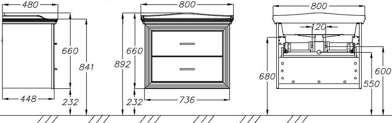 Тумба под раковину Opadiris Карат 00-00003520 Слоновая кость с золотой патиной