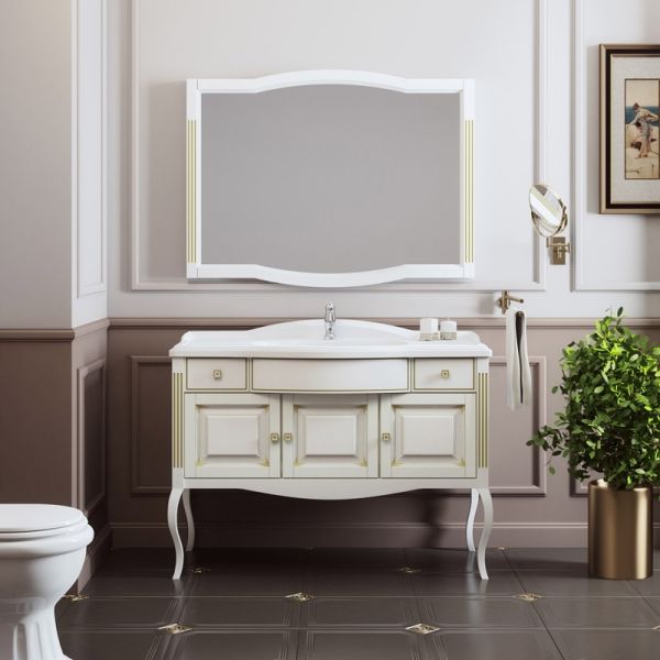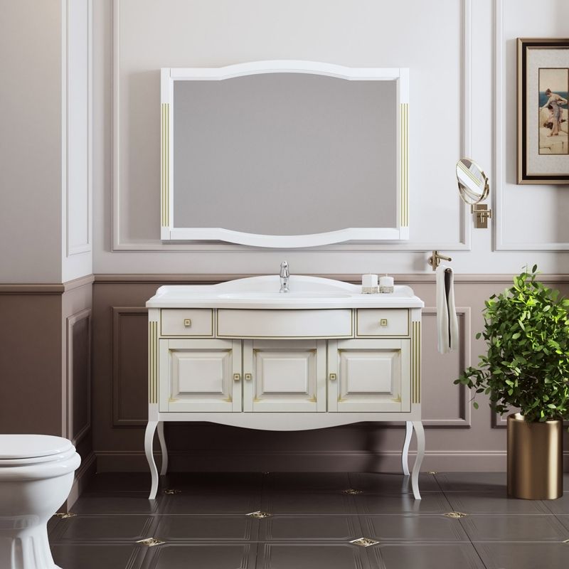 Тумба под раковину Opadiris Лаура Z0000009324 Белая матовая с золотой патиной ручки Swarovski Золото купить