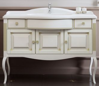 Тумба под раковину Opadiris Лаура 120 Z0000012472. Цвет: белый матовый.Выполнена в классическом стиле с плавными изогнутыми формами и изящными гнутыми ножками. Фасадные элементы украшены резными узорами. Особую роскошь добавляют ручки инкрустированные кристаллами Swarovski.Материал фасада/корпуса: массив бука/влагозащищенный МДФ.