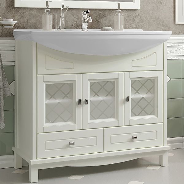 Тумба под раковину Opadiris Омега 85 00-00002824. Элегантные и лаконичные формы изделия идеально впишутся в любой интерьер в стиле прованс. Фасадные элементы украшены оригинальными ромбовидными узорами стеклянных витражей.Характеристики:Цвет: слоновая кость.
