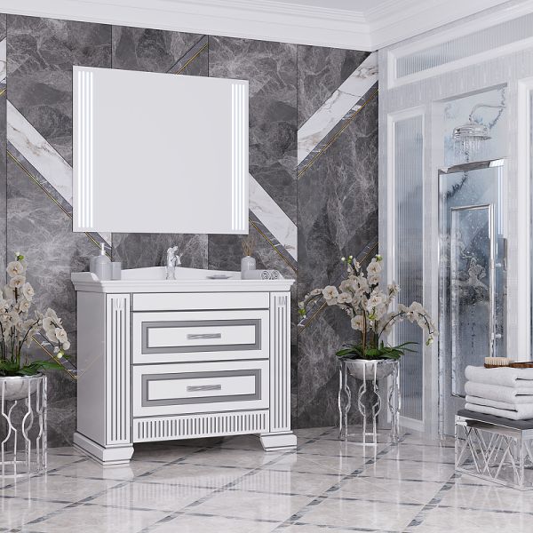 Тумба под раковину Opadiris Оникс 00-00003527 Белая глянцевая с серебряной патиной купить