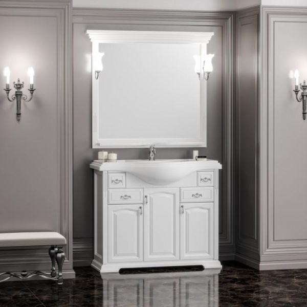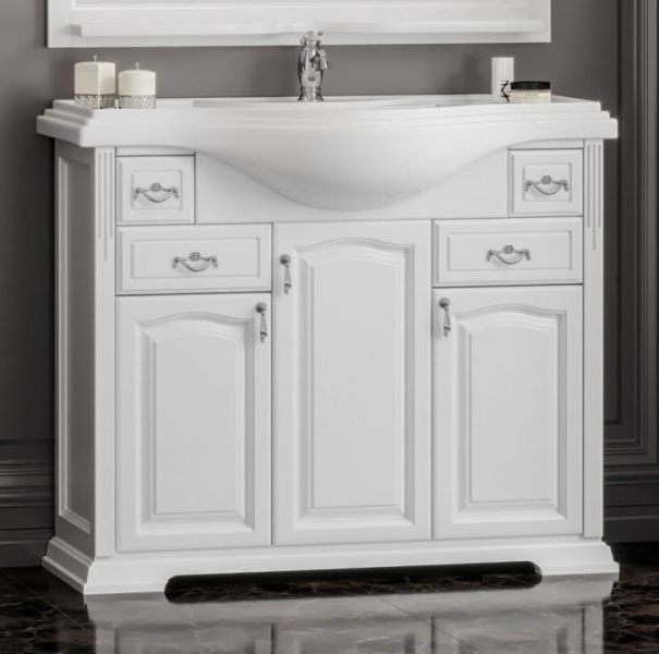 Тумба под раковину Opadiris Риспекто 105 Z0000012631 Белая матовая ручки ХромВеликолепный стиль неоклассики с лаконичными линиями сочетаются с функциональностью и удобством. Прекрасно дополнит классический интерьер ванной комнаты.Материал фасада/корпуса: массив бука/массив бука+филенка МДФ.